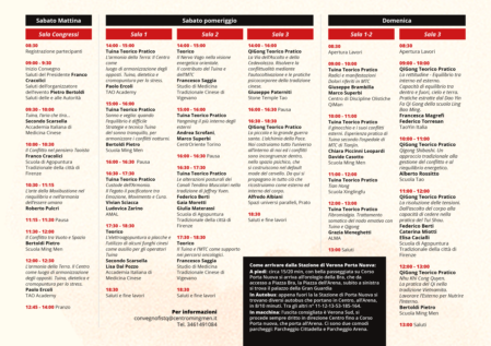Sarà una bella occasione per sentire diversi relatori che faranno un loro intervento sulla Medicina Cinese, il Tuina, il mondo della Formazione e professionale, ma anche le loro diverse storie e dove la Formazione e le competenze sulla Medicina Cinese possono portare.